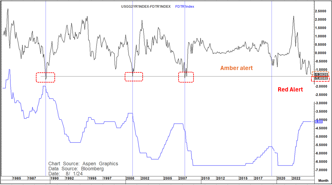 The US 2-year yield is now 130 bp's inverted to the Fed Funds rate.