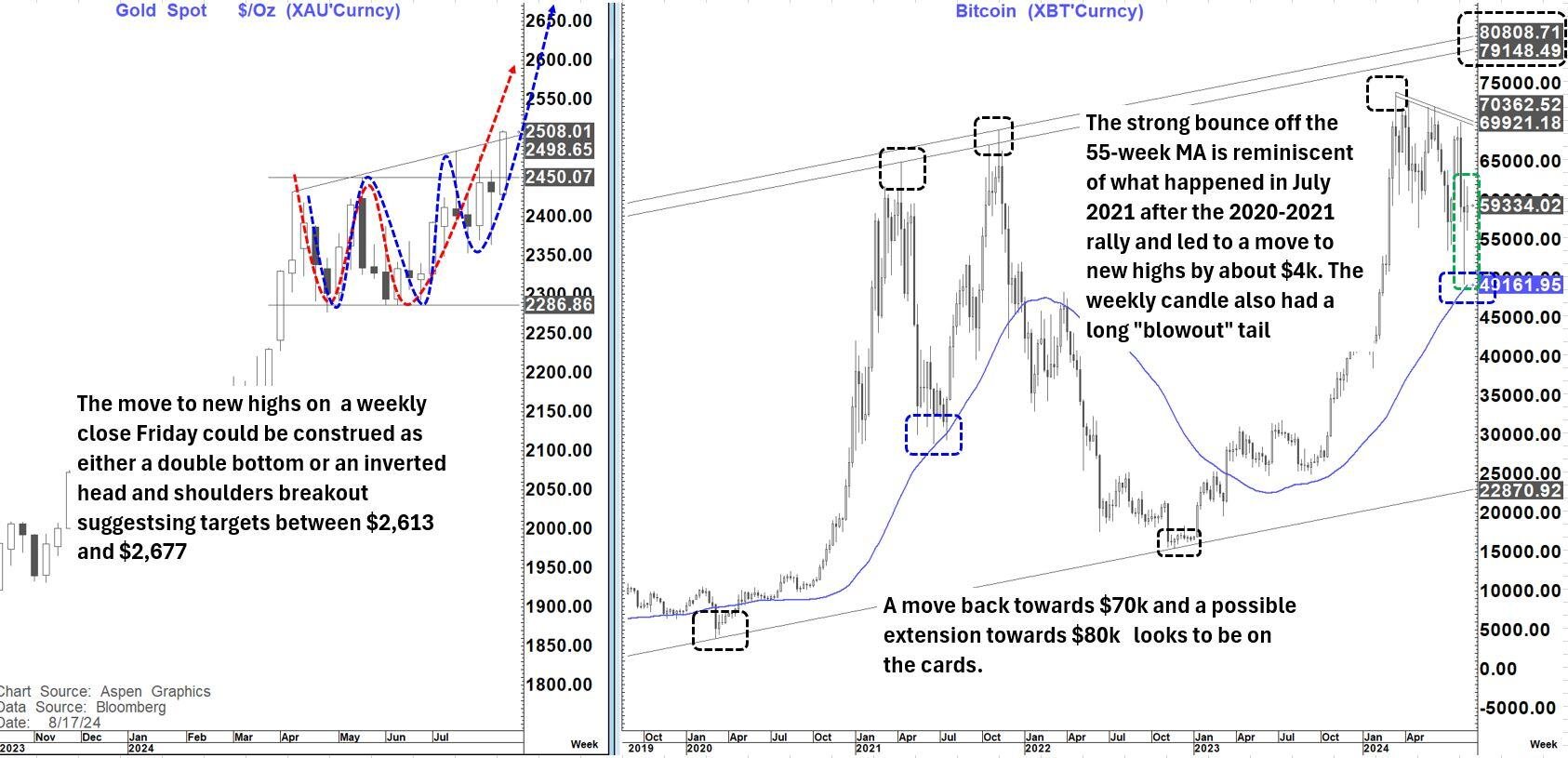 Are Gold and Bitcoin telling us something? Gold is back right on the cusp of a breakout despite some recent choppy trading and above $2,500 looks to open up the potential for accelerated gains again. Bitcoin has been even choppier but also looks like that "chop" will be resolved with another move higher.