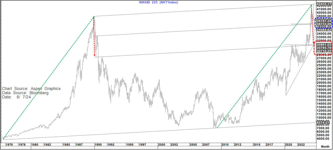 3. For Japan that has been 1990 after the Nikkei got close to 40k, USDJPY went above 160, the BOJ was raising rates and the Fed was lowering rates.