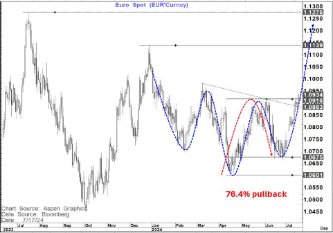 EURUSD has also broken back over 1.0916 (76.4% pivot) in addition to completing an inverted head and shoulders. The suggests (If this break is sustained on a close) a move towards 1.1240 could be on the cards. Similarly, the USD-Index has broken good support at 104.00 suggesting we can see a move to at least 102.35 and below that possibly 100.62