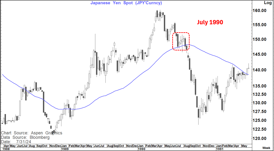 In 1990 USDJPY fell from a peak of 160.20 to 123.75
