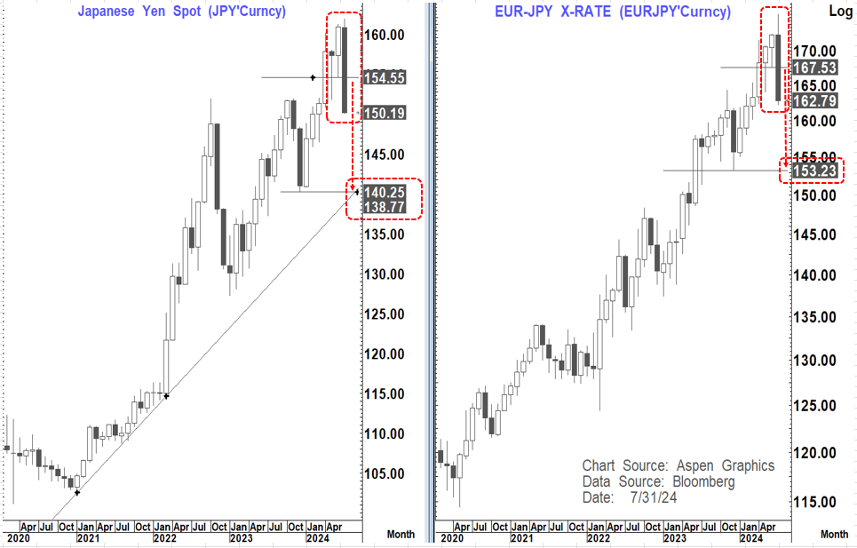 Today we will post a bearish outside month off the trend high on USDJPY with a close below 154.55 and also on EURJPY with a close below 167.53. There are also a number of other monthly reversals in play on JPY crosses (GBPJPY, CHFJPY, CADJPY, SEKJPY, NOKJPY, CNHJPY etc