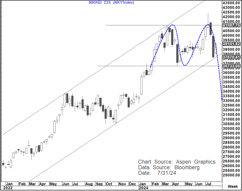 As in 1990 the hiking by the BOJ and the strengthening in the JPY looks to be weighing on the Nikkei.
