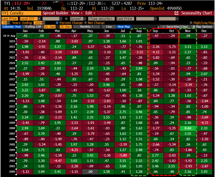 It is also worth looking at the seasonality of TY1 since 2000- in August, Sept, Oct ,Nov