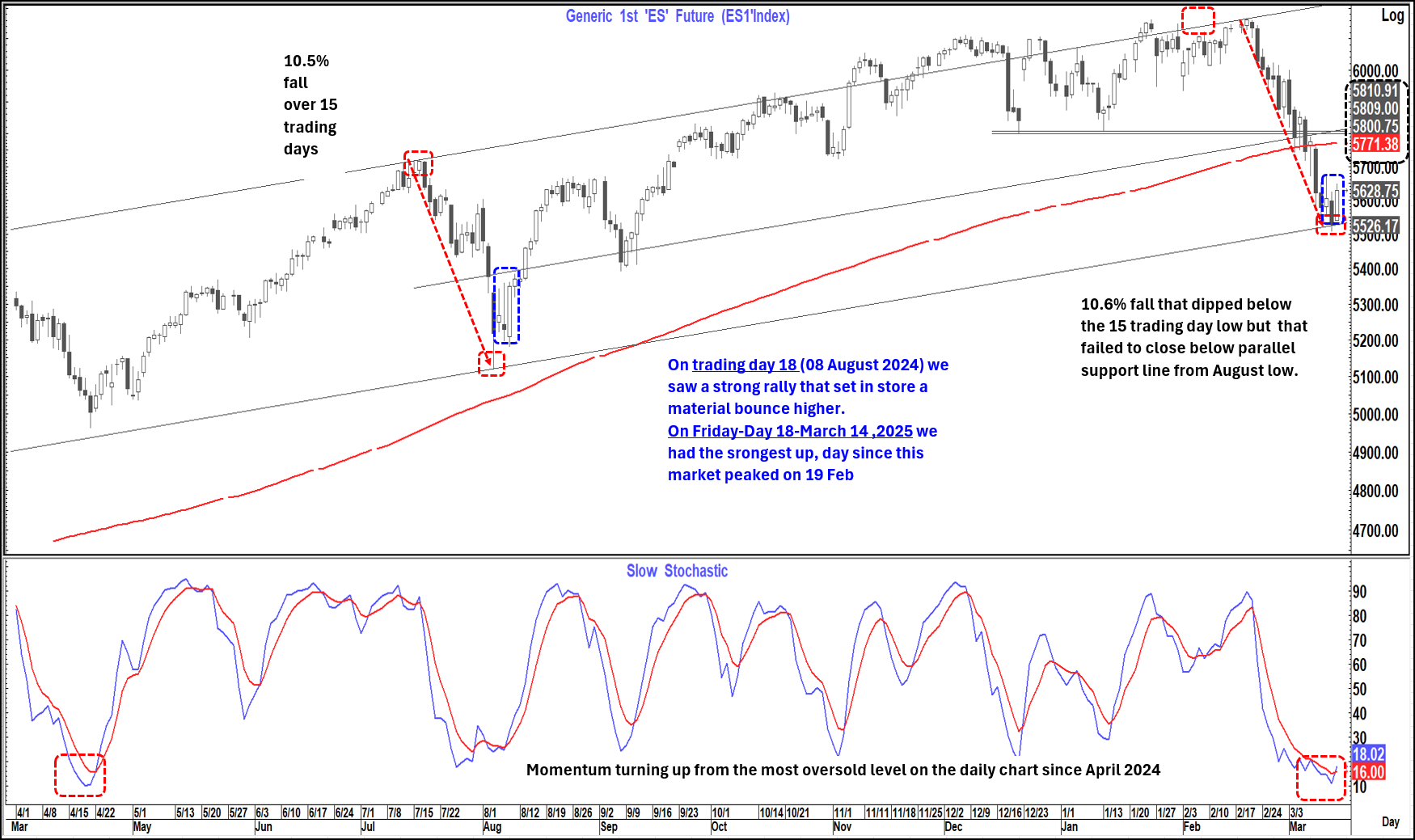 The technical picture on Es1 is very like August last year and somewhat like April so after Friday a continuation of this bounce next week would make sense. I would not be surprised if this could even take it back to very good resistance around 5,770-5,800 in the week ahead consistent with what we saw In August last year and also to a certain extent in April.