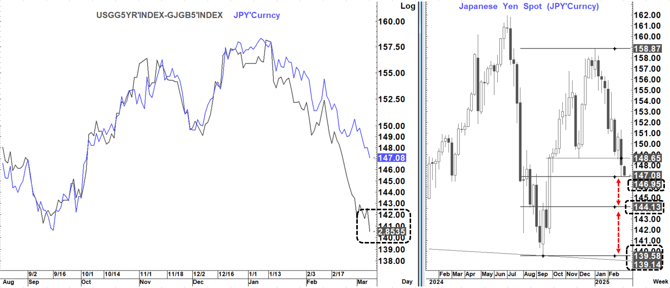 USDJPY still remains way out of line with the US-Japan yield spread which suggests it should be closer to 140-141 at this point.