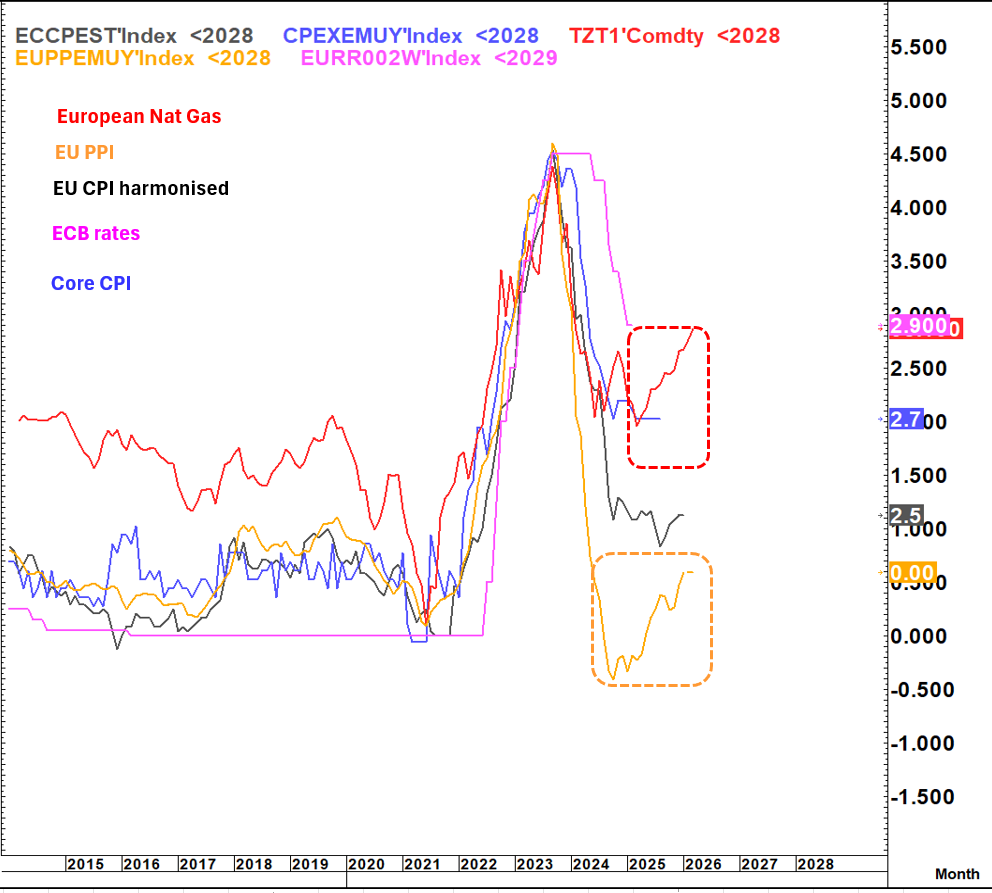 As European Natural Gas has started to rise again, we can see it being reflected in PPI and starting to show up in headline CPI with Core CPI (the most lagging looking like it could be next.