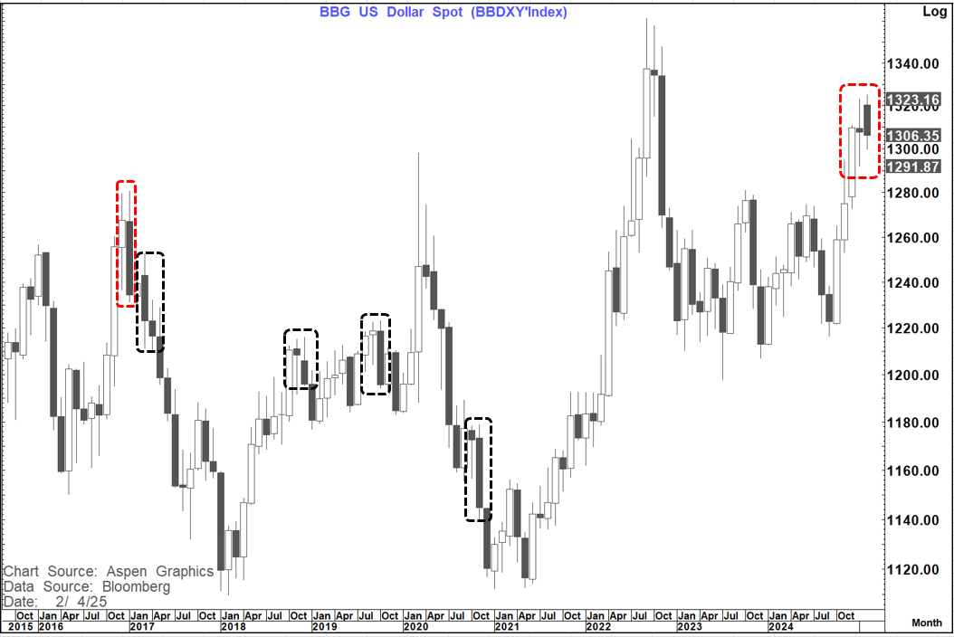 This piece focuses on the price action we have just seen on the Bloomberg USD-Index. (BBDXY)