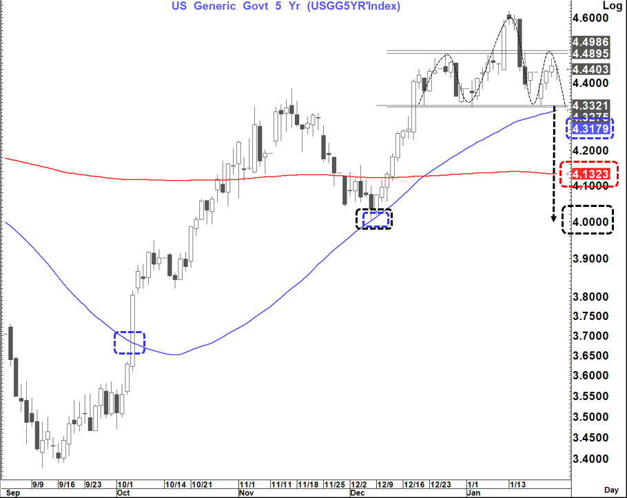 The chart I am presently watching most closely is the US 5-year yield which is "attempting" to form a head and shoulders top and also has a 55-200-day MA setup of interest.