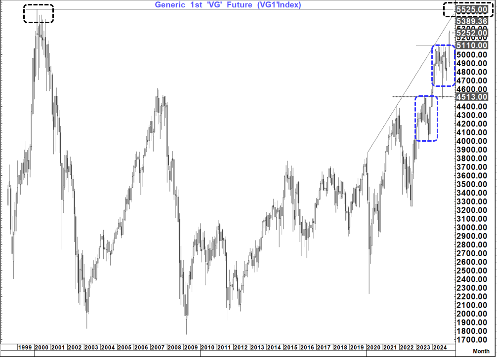 But it is not just US markets. The Eurostoxx 50 has made a clear breakout that suggests at least a return to the 2000 peak at 5,525 if not more