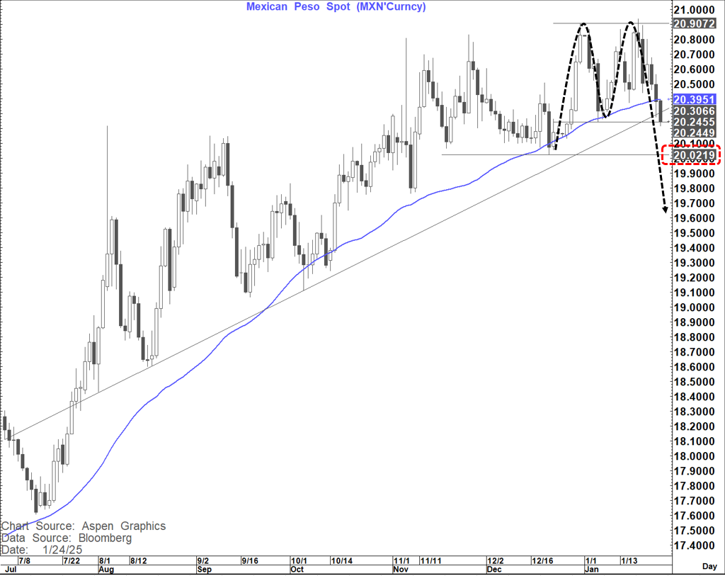 In local markets the most interesting chart has to be USDMXN which is clearly trying to complete a double top at the high of the up move.
