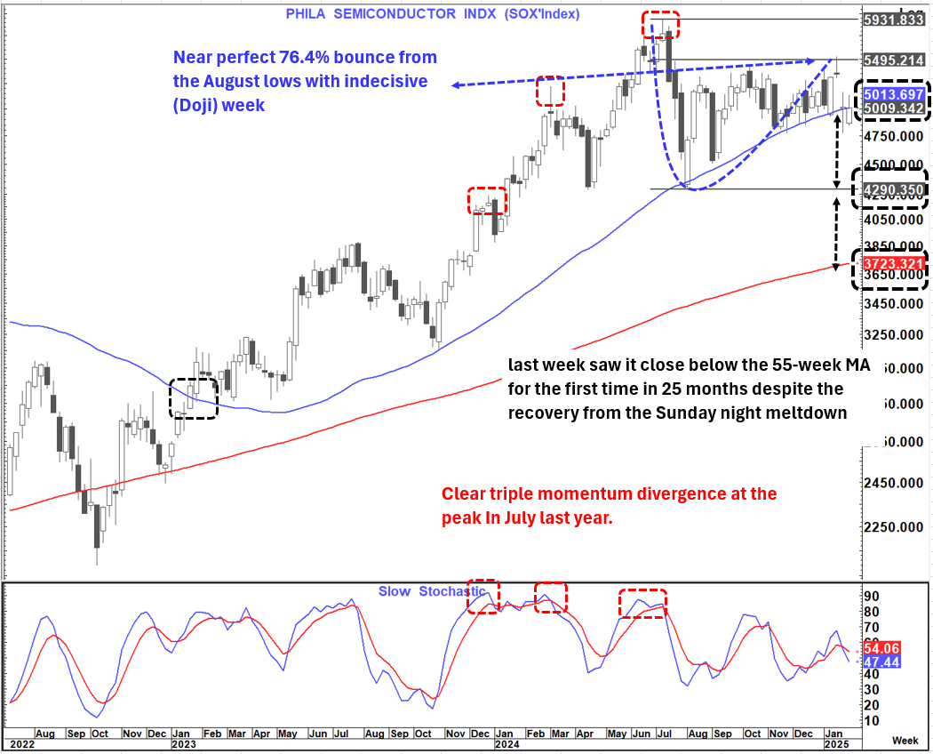 On Friday for the first time in 25 months we closed below the 55-week MA despite the recovery from the Sunday meltdown. This after being very stretched to the 55-Week MA at the peak and opening up a very wide 55-200 Week MA gap.