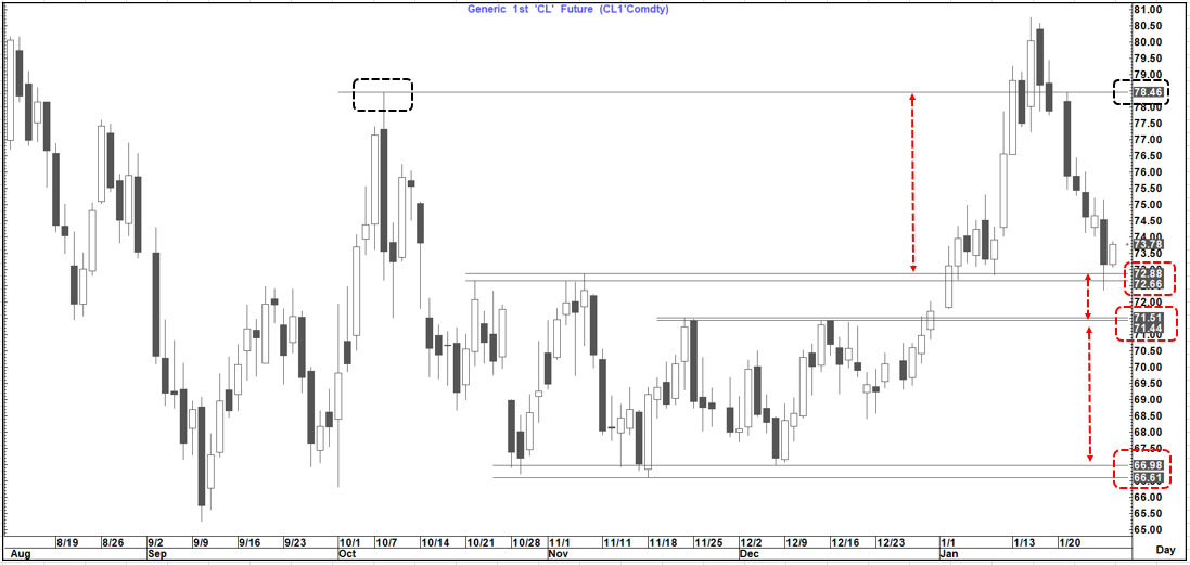 A break below there and a move all the way back down towards the very pivotal support area around $66.60 top $67 would come into play.