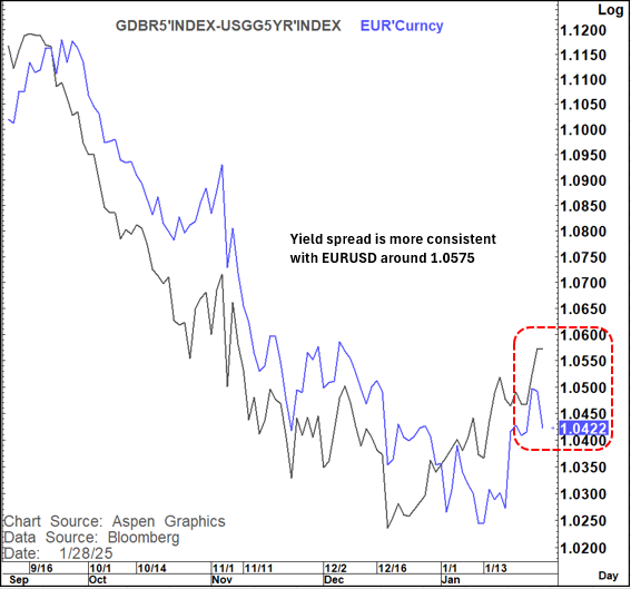 Even If we make that move it is hard at this point to see it being a sustainable one given the big disconnect that exists between EURUSD and the 5-year yield spread.