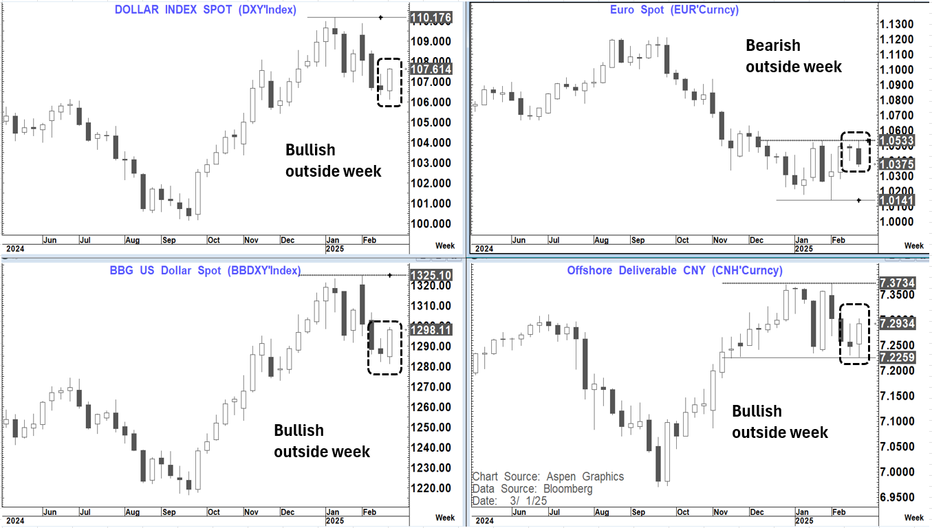 We posted bullish outside weeks on BBDXY, DXY, USDCNH and a bearish outside week on EURUSD