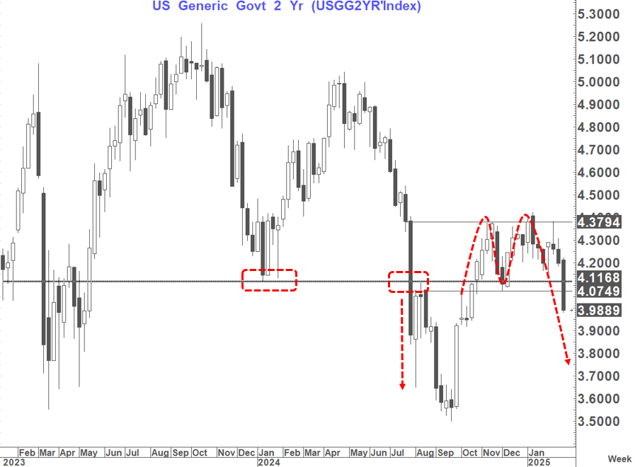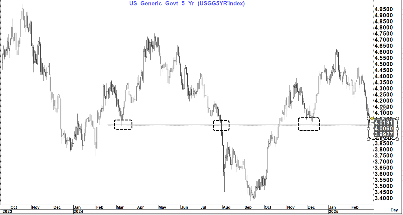Yields still look set to head lower with the break already seen on the US 2-year yield and the US 5-year yield on "the cusp"