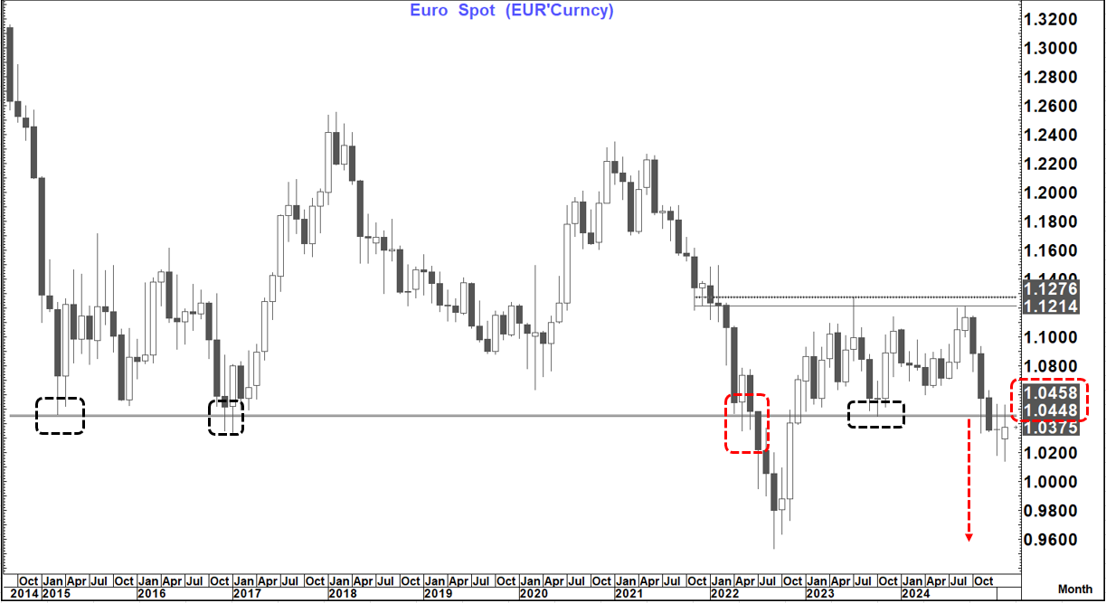 The monthly reversal here, if seen, would have questioned the big break down below the 1.0448-1.0458 area seen December but failed to do so for the 2nd month in a row.