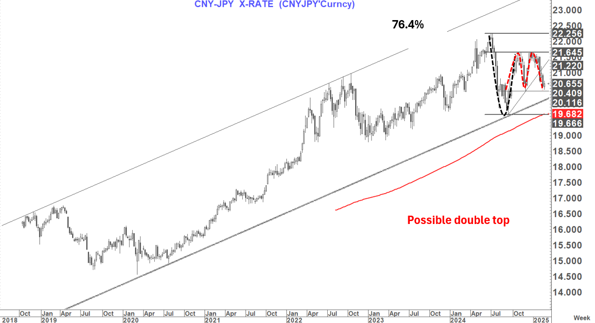 In G10 World EURJPY, AUDJPY, GBPJPY, EURCHF all look interesting but notably so does the CNYJPY chart.