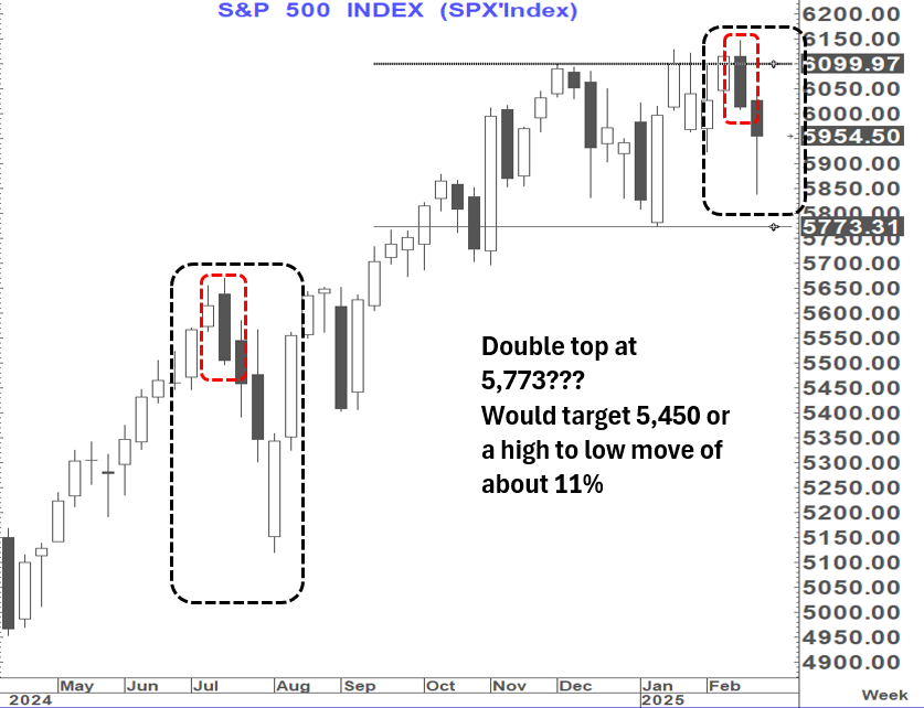In addition, the SPX has completed a double top which suggests a move to at least 5,710 with a bigger double top possible below 5,773