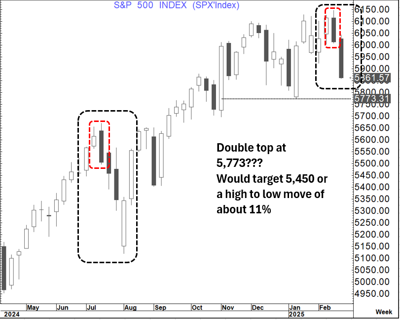 We just missed a bearish outside week in the S&P last week and are in our second down week.