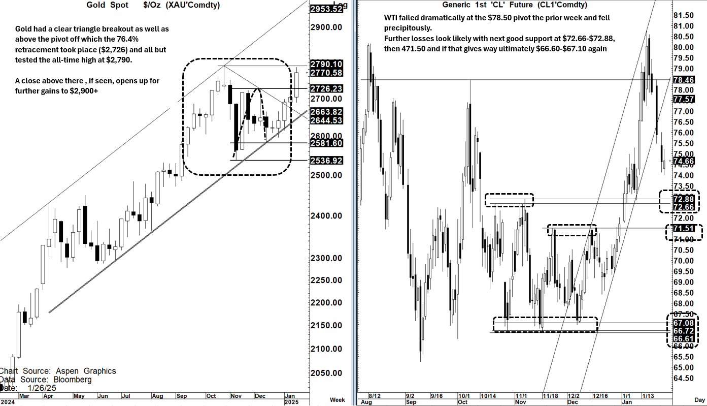 Gold remains bid and a move towards $2,900+ remains the bias. WTI struggled last week, and further struggles look likely in the week ahead