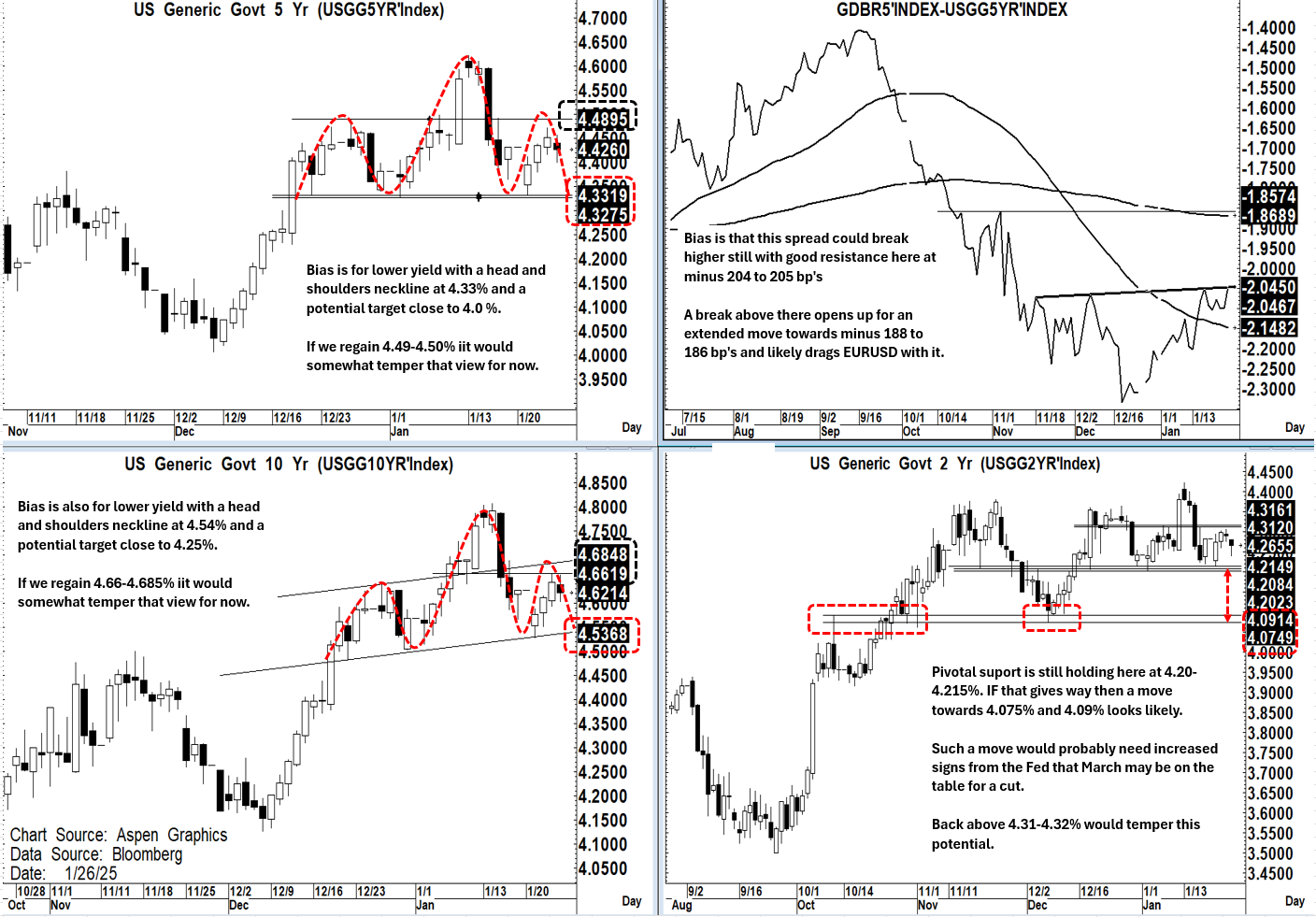 As we start the week lower US Yields and potentially narrower spreads versus Europe is the focus.