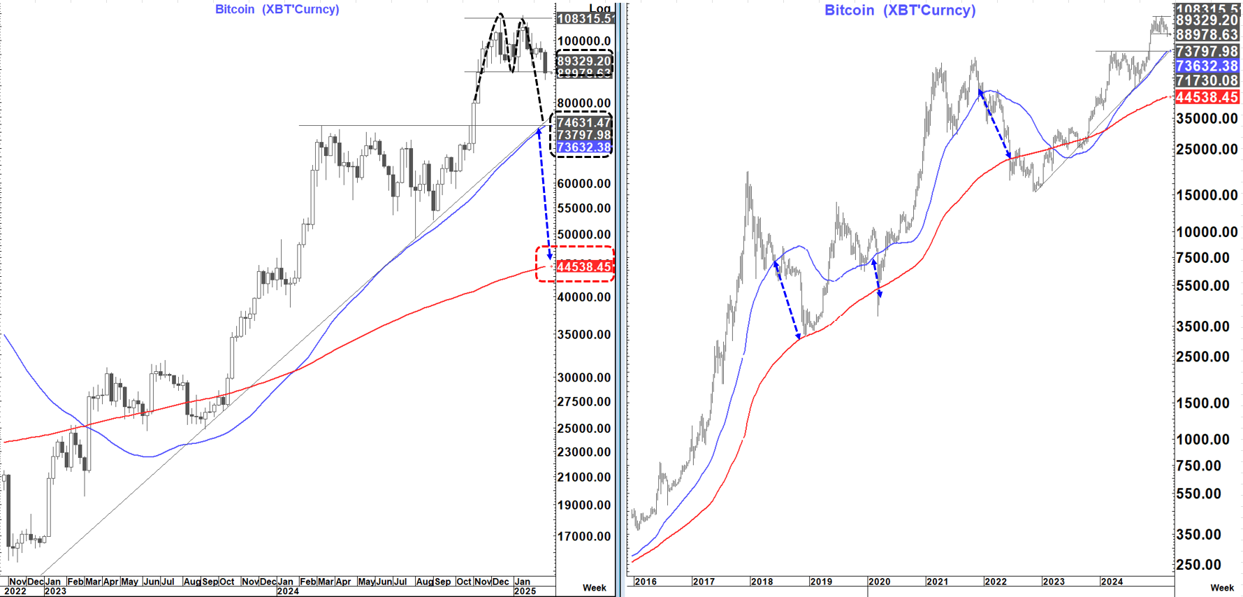 This is the hugely pivotal support are and in particular the 55-Week MA at $73,632.