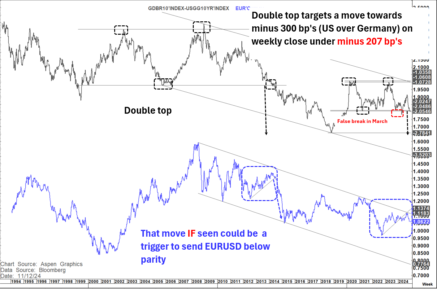 The Germany minus US yield spread and EURUSD setup is starting to look eerily like 2014 before the EURO imploded