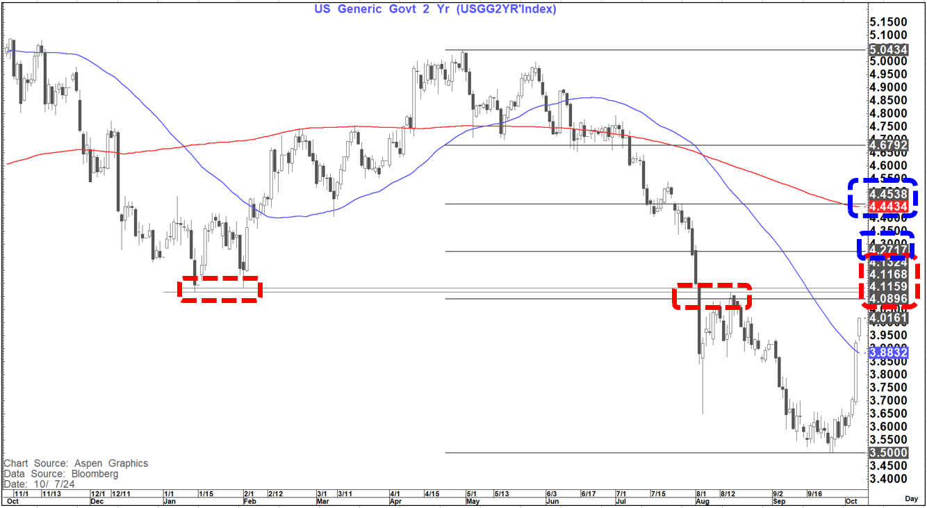 On the US 10-year yield we are also testing 4.02% to 4.03% resistance. A break above here and 4.14% to 4.19% could come into play