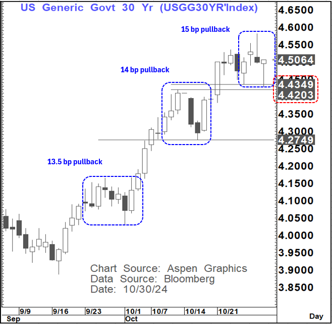We did get some expected pullback in this move in recent days, but it is already looking like that correction lower in yields may have already run its course, And, despite obvious event risk in the coming days it looks like yields are once again setting up to move higher again.