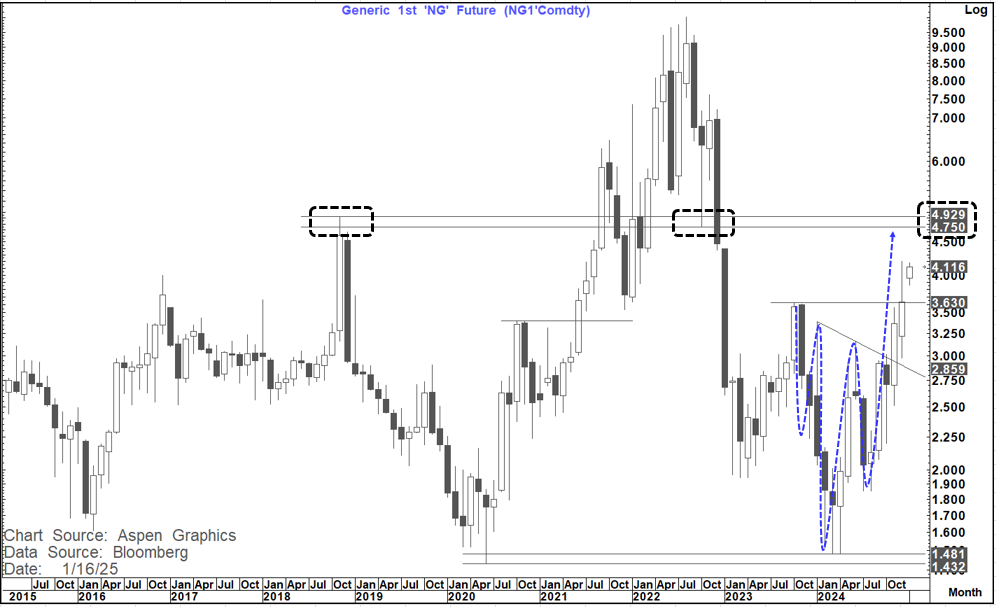 A move above the $4.75-$4.92 area would open up the way for more material gains. In 2022 that was above $10 but again we had the "Ukraine" effect
