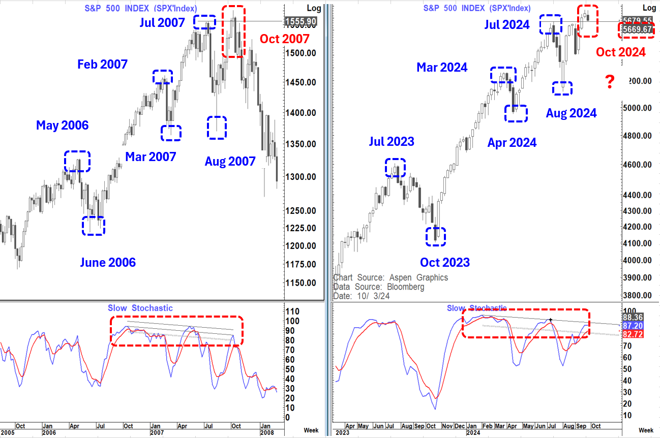 Below is a chart comparing the 2006-2007 price action on the S&P and 2023-2024.