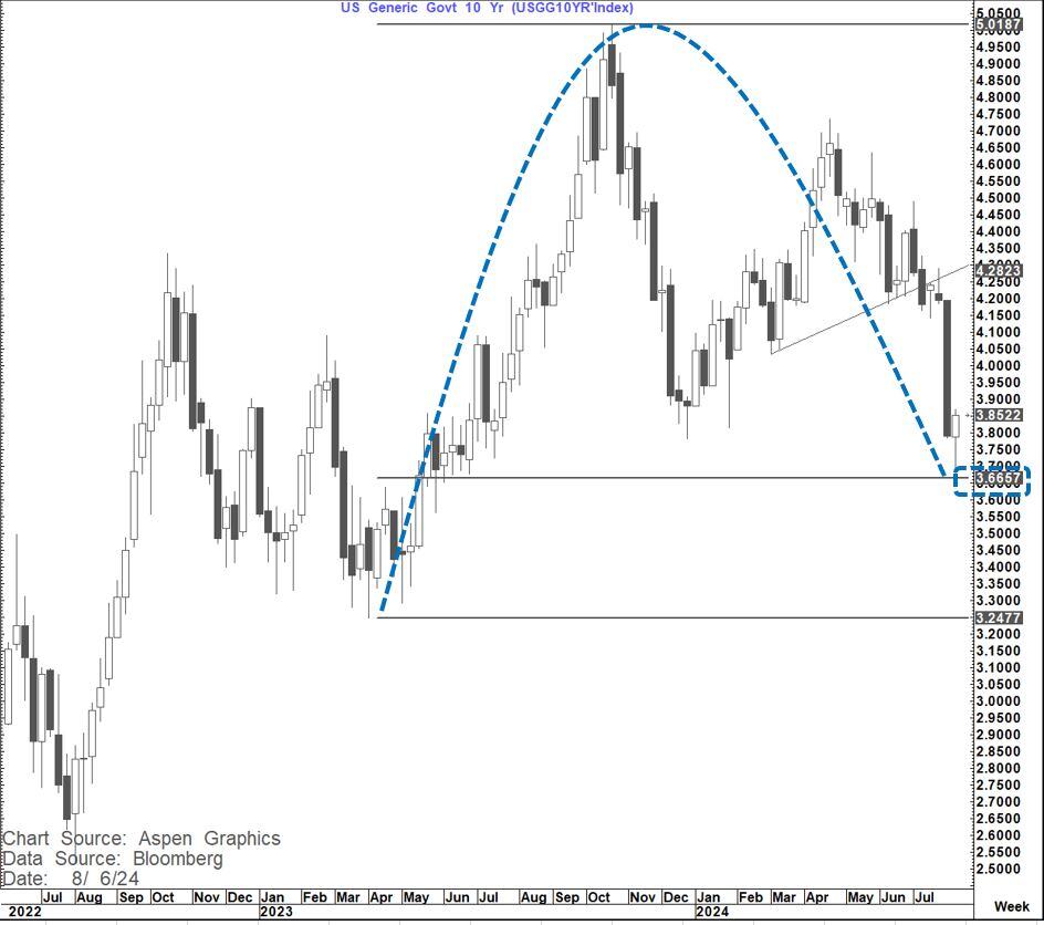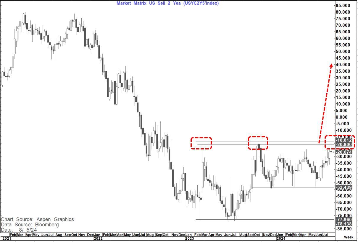 Such a move IF seen, would likely be bull steepening and have implications for the 2-year yield and by definition Fed policy in terms of the magnitude and timing of the first cut.