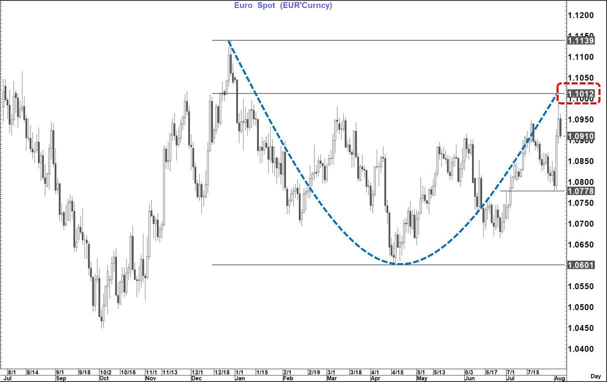 EURUSD failed just short of the 76.4% pullback level at 1.1012 and has fallen away since . A move back towards 1.0778 looks possible while that level holds.