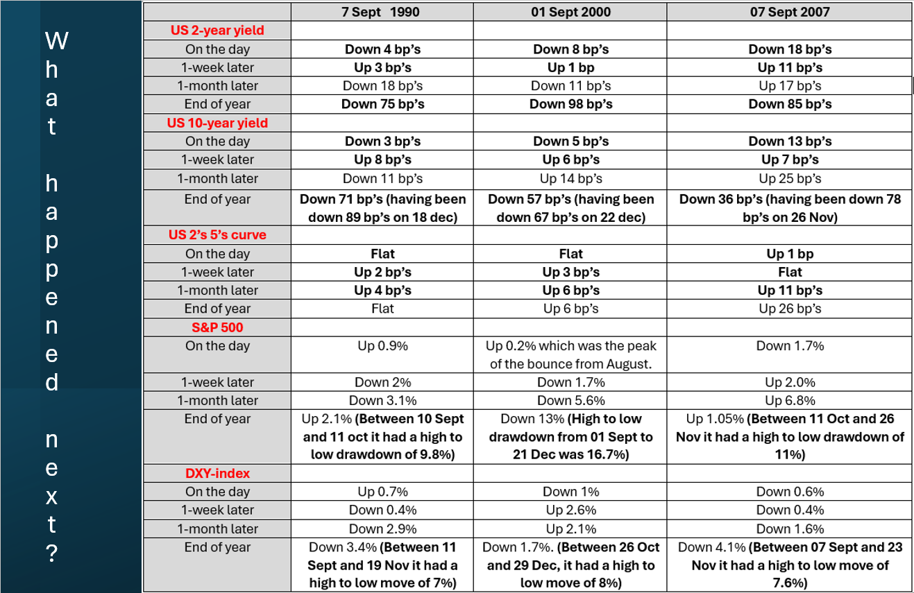 1990: We have no revision data a from back then. July printed minus 35k and August followed with minus 212k. The unemployment rate went from 5.5% in July to 5.7% in August. This is the least compelling of the 3 periods compared to today. The participation rate in August was 66.5%