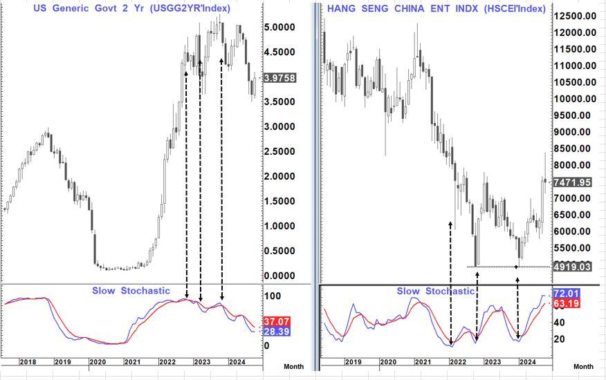 It is VERY RARE to see this on a monthly chart and 2 examples are below and we can see what happened next. On the US 2-year yield we got this development at the high for the first time in history and on the HSCEI recently we saw pretty much the same development