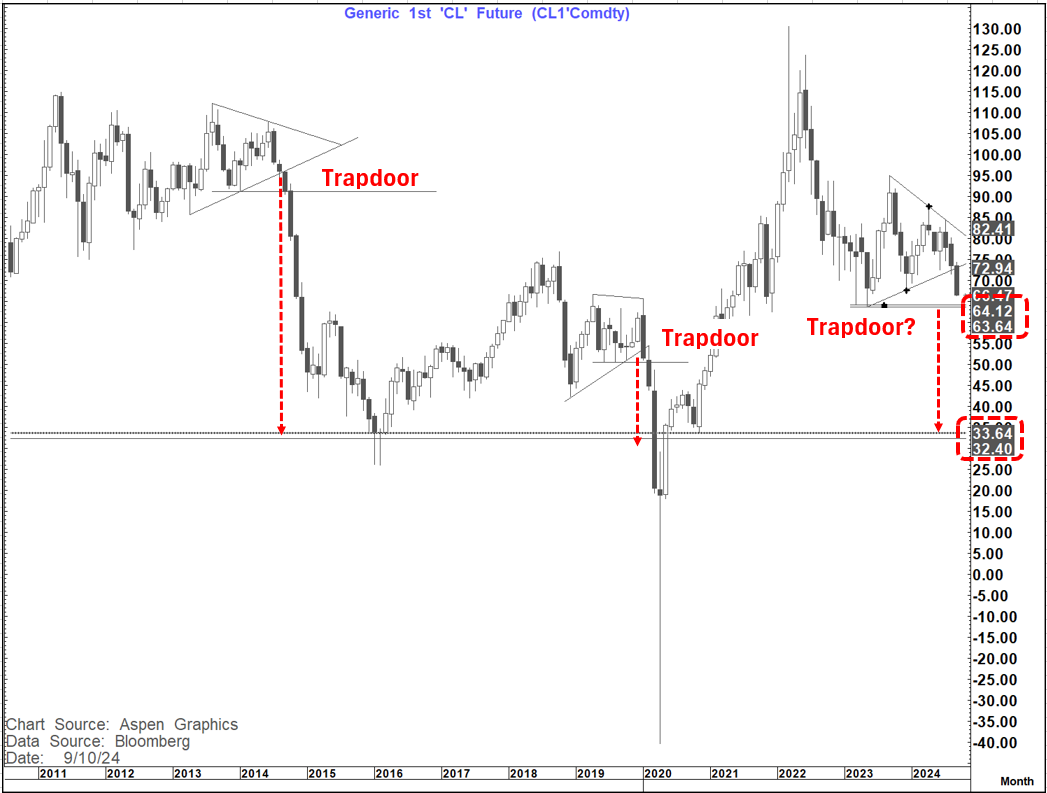 IF WTI makes a decisive break (at least weekly close) below pivotal support at $63.64 to $64.12 this move could get increasingly ugly on the downside.