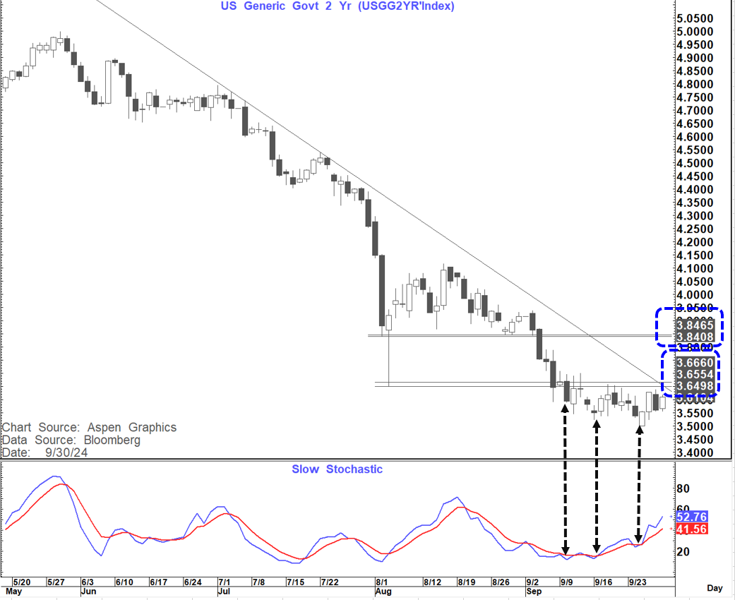 The US 2-year yield chart has completed clear triple positive momentum divergence on the daily chart (Low, lower low and lower low on yield while posting low, higher low and higher low on momentum)