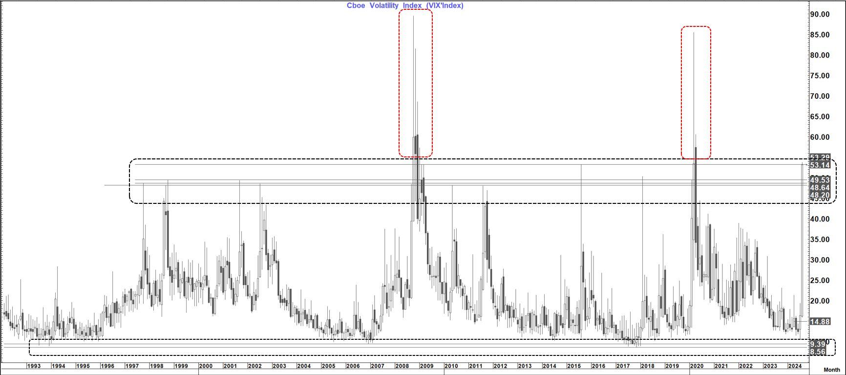On 8 occasions (including today) the VIX has rallied to between 48%+ and 53%+ going back to and before 1987.