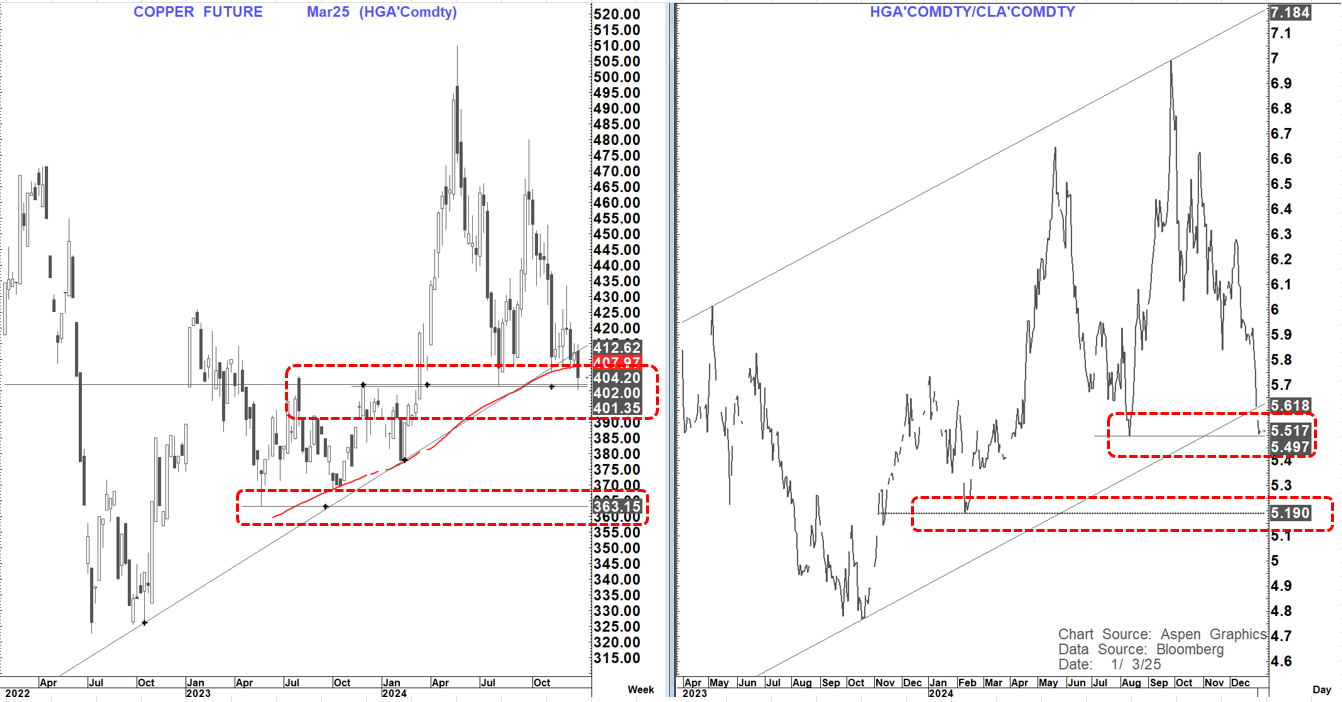 The fact that Copper continues to struggle to rally off this $400 level (and will look very susceptible if that goes) and the Copper/Crude ratio is falling further supports the notion that the Oil move is not coming from a perceived positive demand backdrop.