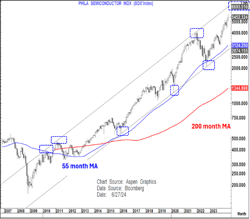 As mentioned, this week the potential Triple momentum divergence (negative) on the SOX Index (Philly Semiconductor) now seems less likely to cross down unless we see a decent fall in the next two days.